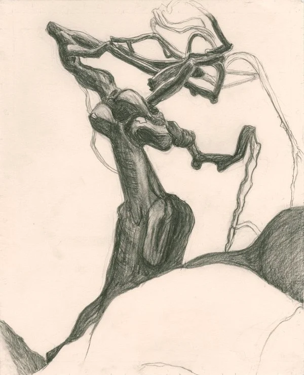 Drawing vastly increases how much one sees, and to that end I set about drawing the Camperdown Elm. In my view drawing and writing nourish each other, while trees provide a place where they meet and articulate the structures they have in common.